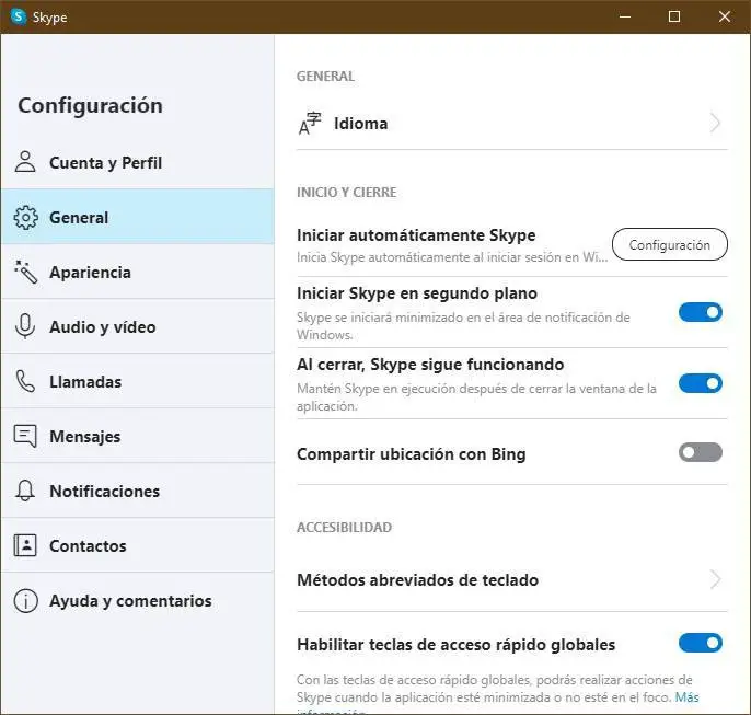 También vamos a poder elegir si queremos que Skype se inicie en segundo plano automáticamente, para que no aparezca su ventana principal, o qué queremos hacer al cerrar Skype, si cerrarlo por completo o que quede en funcionamiento en segundo plano.