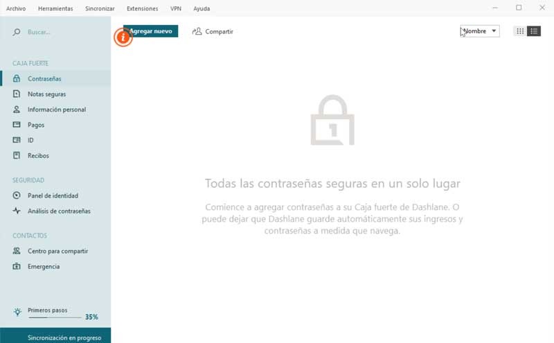 Vous pouvez télécharger Dashlane à partir de ce lien . De plus, nous pouvons contracter l’abonnement Premium pour 3,33 euros, avec facturation annuelle. Cette version a des mots de passe et des appareils illimités, le remplissage automatique des formulaires et des données de paiement, des alertes de sécurité personnalisées entre autres fonctions.