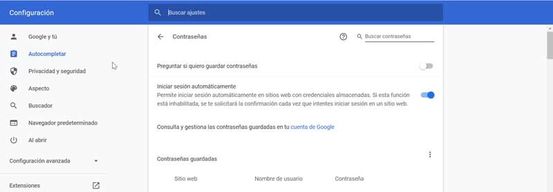 Le gestionnaire de mots de passe Google Chrome est un outil utile avec lequel nous pouvons stocker en toute sécurité les différentes clés et mots de passe que nous utilisons sur Internet pour accéder à certains services. De cette façon, chaque fois que nous entrons sur un site Web et que nous entrons notre nom d’utilisateur et notre mot de passe pour la première fois, Google Chrome nous demandera si nous voulons qu’il l’enregistre. Si nous disons oui, chaque fois que nous accédons à cette page à nouveau, nous n’aurons qu’à remplir automatiquement les champs de nom d’utilisateur et de mot de passe enregistrés dans le navigateur.