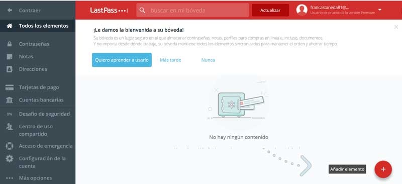 Vous pouvez vous inscrire à LastPass dans sa version gratuite à partir de ce lien . Il est également possible de passer à la version Premium pour 3 $ par mois. De cette façon, nous aurons des fonctions avancées, telles que le partage avec plusieurs personnes, 1 Go de stockage de fichiers cryptés, entre autres fonctions.