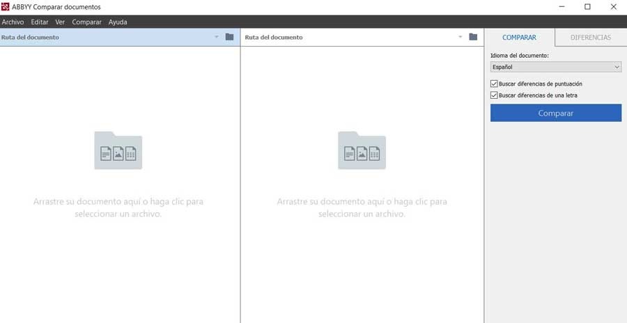 D’autre part, et également sur le côté gauche de l’interface principale du programme, nous trouvons une option qui nous permet de comparer le contenu textuel de deux fichiers précédemment numérisés . C’est une autre fonction très importante dans l’industrie de la reconnaissance de caractères. Et si nous vous avons déjà montré comment ouvrir et créer ces documents texte modifiables , nous pouvons maintenant les comparer. Comme vous pouvez l’imaginer, lorsqu’il s’agit de documents numérisés à l’aide de l’OCR susmentionné, la possibilité de les comparer est très pratique dans de nombreux cas.
