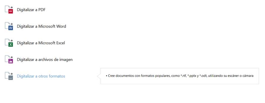 Mais comme nous pouvons le voir dans l’ interface principale du programme dont nous parlons, sur le côté gauche de celui-ci, nous voyons une série de fonctions de base du programme. Jusqu’à présent, nous vous avons parlé de ceux qui se trouvent dans la section Documents numérisés ouverts, mais nous en trouvons d’autres.