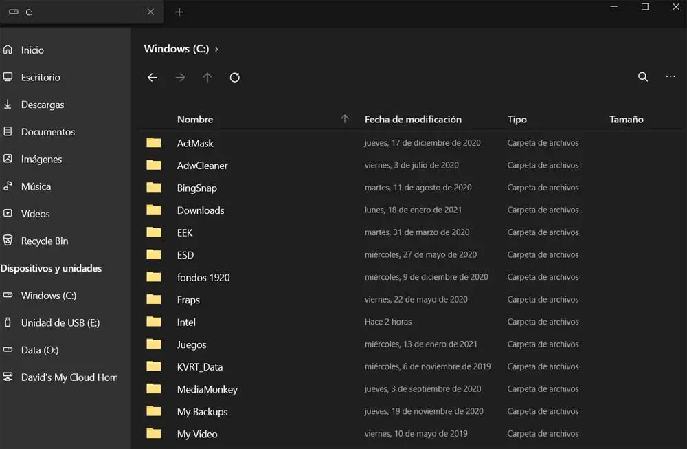 Todo esto que os comentamos, diseñado con los paneles habituales de Fluent Design para que se adapte al resto del sistema operativo. Luego, a medida que nos movemos por las unidades y ubicaciones de disco, el panel derecho es que el que nos muestra los contenidos señalados. Decir que para poder interactuar tanto con los archivos como con las carpetas del panel derecho, el método más rápido es pulsando con el botón derecho del ratón sobre el mismo.
