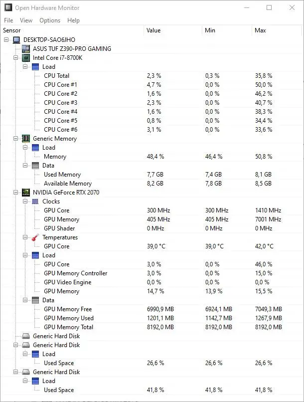OpenHardwareMonitor est un programme entièrement gratuit et open source pour Windows dont le but principal est de surveiller les températures de l’ordinateur, le fonctionnement du ventilateur de l’ordinateur, les tensions et d’autres éléments qui peuvent influencer les performances du PC.