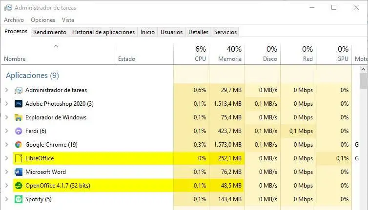 Lors de l’utilisation d’une suite bureautique, il est très important de mesurer sa consommation. LibreOffice, comme nous l’avons déjà dit à plusieurs reprises, manque de performances lors du chargement de toute la suite en mémoire. Cela signifie que, quel que soit le programme que nous utilisons, nous devons lui réserver entre 200 et 500 Mo de RAM . En plus dépend de Java.