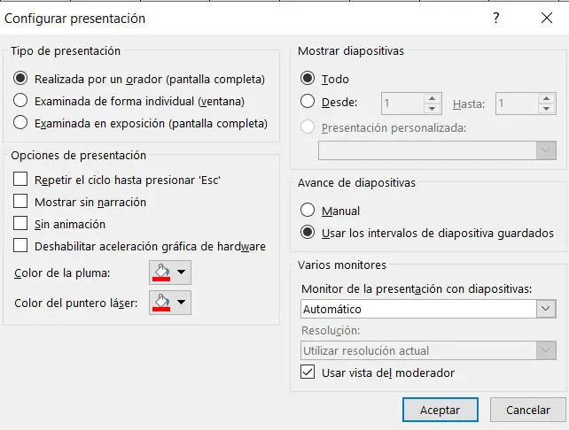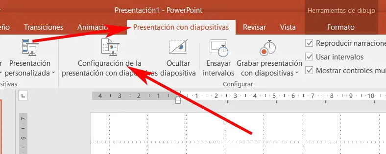 Ensuite, ce sera lorsque nous accèderons à l’ option PowerPoint qui nous intéresse ici via l’option «Paramètres du diaporama». Une nouvelle fenêtre s’ouvrira dans laquelle nous pouvons trouver plusieurs options liées à cette optimisation . De cette manière et automatiquement, on peut se passer d’éléments tels que des animations ou de l’audio de la présentation.