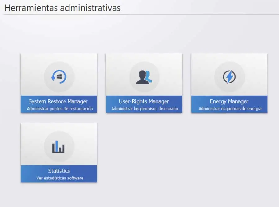 Nous verrons ici qu’un bon nombre de raccourcis vers des fonctions d’optimisation de toutes sortes sont exposés. Pour ne pas nous perdre parmi tous, ils sont catalogués dans différents types d’utilisation ou d’objectifs. Parmi ceux-ci, nous pouvons souligner ceux liés aux performances, aux outils d’administration, à l’ analyse des composants ou à la personnalisation de Windows .
