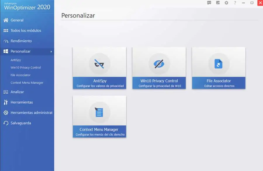 Si nous jetons un coup d’œil à la colonne de droite discutée ci-dessus, sous l’option Modules, nous verrons un accès direct à chacune des catégories mentionnées. Ainsi, il est fort possible que l’un de nos principaux objectifs lors de l’utilisation d’Ashampoo WinOptimizer soit d’améliorer le fonctionnement de Windows.