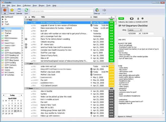 Il s’agit d’une application de gestion de tâches gratuite et open source publiée sous la licence GNU. Chandler prend en charge les calendriers, les notes, les tâches, les calendriers et les e-mails, le tout dans une seule application. Il a une structure similaire à une forme libre qui offre une grande flexibilité en termes de flux de travail. Avec ce programme, nous pouvons créer toutes sortes de tâches, notes, rendez-vous, en pouvant modifier les éléments créés automatiquement et ainsi simplifier les dates clés de chaque tâche.