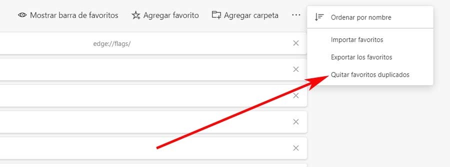 Ce sera alors lorsque nous trouverons directement l’option que nous recherchons ici, puisque nous verrons un appel Supprimer les favoris en double. Donc, ce que nous obtenons, c’est que le processus se déroule automatiquement.