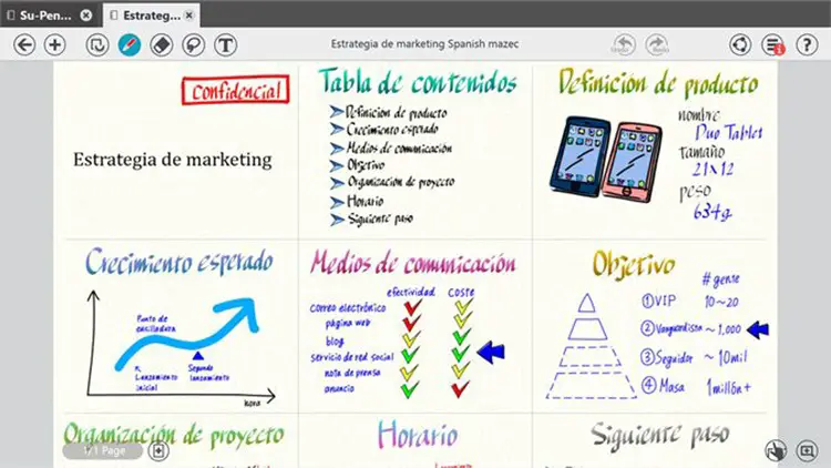 C’est un bloc-notes multiplateforme qui peut être très utile pour les étudiants car il intègre des outils d’annotation PDF et un bloc-notes numérique où vous pouvez prendre des notes. Il a une reconnaissance avancée de l’écriture manuscrite , la conversion de texte ou la possibilité d’annoter des documents PDF téléchargés. Il peut être considéré comme un tableau noir, similaire à celui que l’on peut trouver en classe, mais virtuel. Nous pouvons y dessiner, faire des annotations et des tâches, etc. Permet également les enregistrements vocaux et la synchronisation de documentsautomatiquement avec MetaMoji Cloud, votre service cloud qui nous permet de sauvegarder et de gérer gratuitement des documents jusqu’à 2 Go. De plus, nous pouvons partager nos documents par e-mail, ou les télécharger directement sur nos réseaux sociaux tels que Twitter, Facebook ou Tumblr.