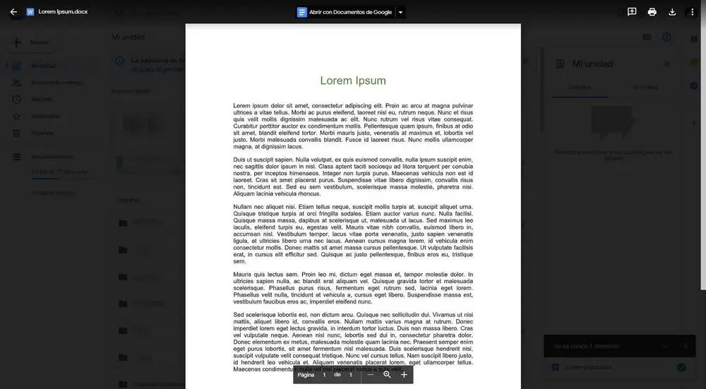 Une fois que nous nous sommes connectés, ce que nous devons faire est de faire glisser le fichier DOC ou DOCX de l’ordinateur vers la fenêtre du navigateur pour le télécharger sur le cloud. Une fois téléchargé, nous pouvons l’ouvrir en cliquant dessus, en utilisant le programme Google Documents directement depuis le navigateur.