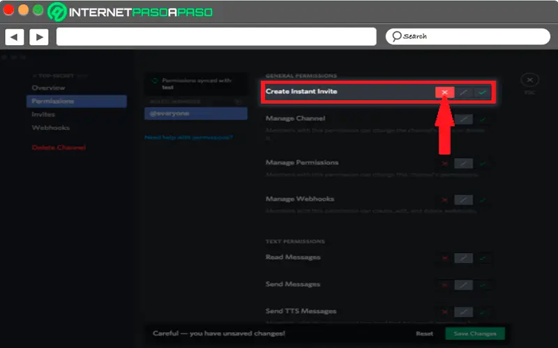 - Maintenant, dans cette image, vous allez être refusé toutes les autorisations pour créer des liens d’invitation instantanés pour le canal «Super Secret».