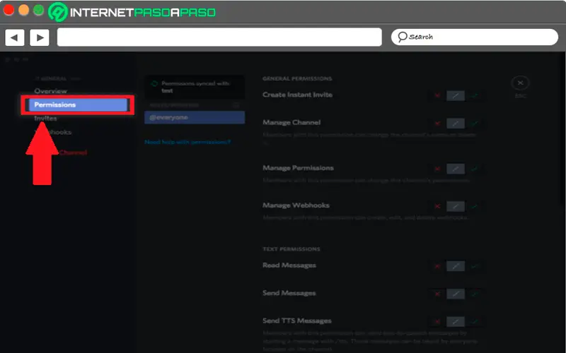 - Afin de définir les autorisations pour les rôles ou les membres individuellement sur ce canal, vous devez sélectionner l’onglet «Permission» situé dans le menu de configuration du canal.
