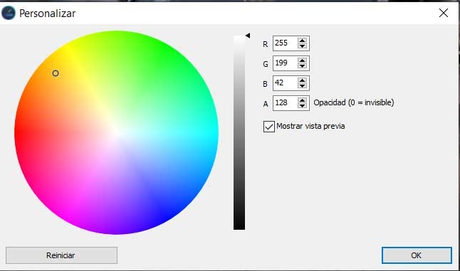 De plus, lorsque nous déplaçons le curseur dans le sélecteur de couleur, nous voyons comment la barre des tâches change de teinte en temps réel. De cette façon et comme vous pouvez l’imaginer, ce que nous obtenons, c’est que cet objet si utilisé dans Windows, acquière un dégradé attrayant avec la tonalité de couleur que nous spécifions dans la configuration .