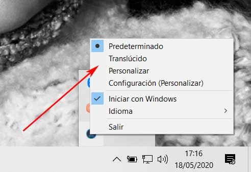 Par défaut, une fois que le programme démarre, il définit la barre des tâches comme translucide, nous verrons donc comment elle disparaît presque. En fait, c’est quelque chose qu’un bon nombre d’utilisateurs a exigé en tant que quelque chose intégré à Windows lui-même. Par conséquent, ceux qui recherchaient cet aspect , pourront enfin l’utiliser sans aucun effort. Mais bien sûr, ce n’est pas la seule chose que nous présente Ashampoo Taskbar Customizer. Par conséquent, pour pouvoir utiliser le reste des options, il suffit de faire un clic droit sur la nouvelle icône.