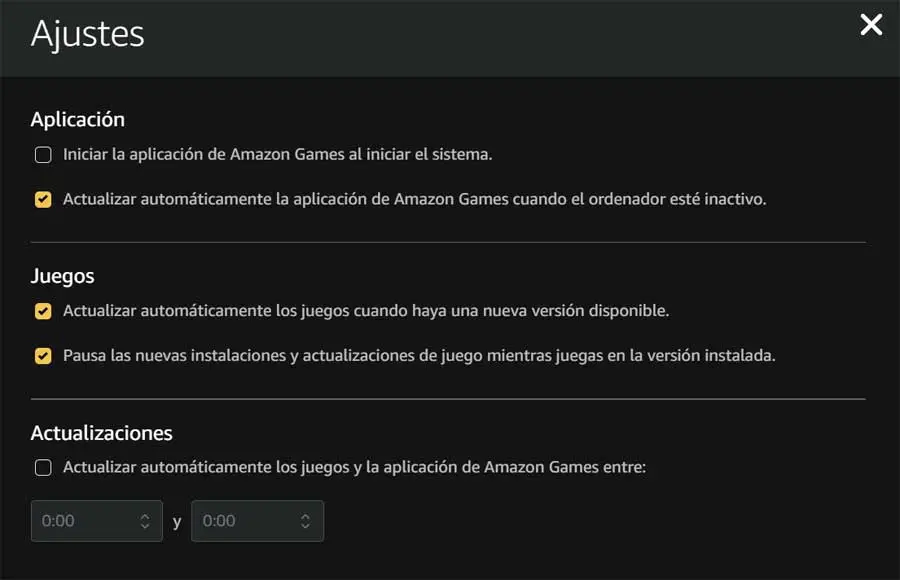 Dans cette section spécifique, nous verrons que le client propose plusieurs paramètres que nous pouvons ajuster à nos besoins. Ainsi, nous pouvons indiquer si nous voulons que les jeux se mettent à jour automatiquement, ou non, spécifier une plage d’heures pour le faire, ou démarrer le client avec Windows lui-même. Non pas qu’il existe de nombreuses fonctions de personnalisation que nous pouvons utiliser à partir d’ici, mais elles seront plus que suffisantes pour de nombreux utilisateurs qui ne veulent pas de complications lors de la lecture sur PC.