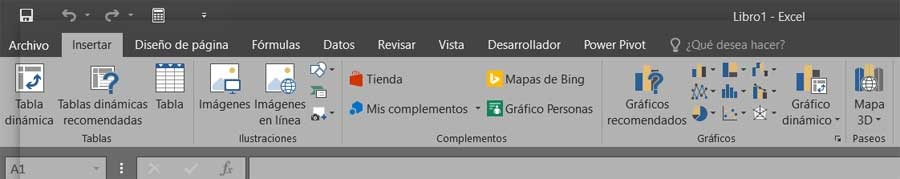 Parmi les éléments les plus importants lors de l’utilisation d’Excel, ce sont les menus et la barre d’outils que l’on retrouve dans l’interface du programme. Nous les utilisons presque constamment pour pouvoir accéder aux fonctions et fonctionnalités de l’application. Comme dans le reste des propositions de logiciels PC , certaines options que nous utilisons plus et d’autres moins. De même, on retrouve des fonctionnalités plus visibles que les autres, ce qui n’est pas toujours la plus efficace ou fonctionnelle.