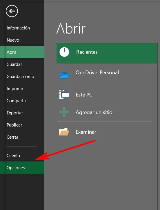 De la même manière, nous pourrons mettre en évidence certaines options d’ accès rapide afin de pouvoir les utiliser de manière plus directe. Comme vous pouvez l’imaginer, tout cela nous aidera à optimiser le travail avec Excel, tout en augmentant notre productivité. Eh bien, une fois que nous savons cela, disons que nous pouvons réaliser tout cela à partir du menu Fichier / Options.