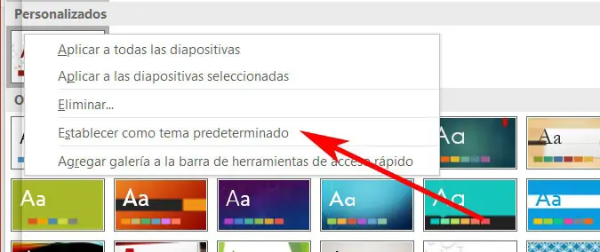 Mais ce n’est pas tout quand on parle de ces éléments, puisque le programme, PowerPoint, nous permet également de créer nos propres modèles personnalisés. Par conséquent, ci-dessous, nous allons vous montrer le moyen d’y parvenir que nous commentons. Il convient de mentionner tout d’abord que Microsoft PowerPoint permet aux utilisateurs de définir un modèle personnalisé par défaut lors de la création d’une nouvelle présentation. Cela nous donne un avantage pour pouvoir commencer immédiatement à travailler sur un diaporama avec un modèle spécifique.