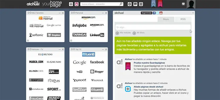 Il s’agit d’une plate-forme gratuite basée sur le cloud qui nous permet d’ organiser et de catégoriser les liens vers divers sites Web sur notre page d’accueil. Il dispose de plusieurs blocs à partir desquels nous pouvons facilement et confortablement naviguer vers nos sites Web préférés tels que Facebook ou Google. Nous pouvons également ajouter des boutons pour écouter la radio, consulter nos e-mails dans Gmail ou utiliser différents widgets. Chaque bloc peut être personnalisé dans une couleur différente afin que nous puissions différencier les catégories, ainsi que le déplacer vers différents points de l’écran. Auparavant, il avait pour inconvénient la nécessité d’être configuré à partir de chaque ordinateur que nous l’utilisons, bien qu’il soit déjà possible d’y accéder en ligne sans avoir à le télécharger.