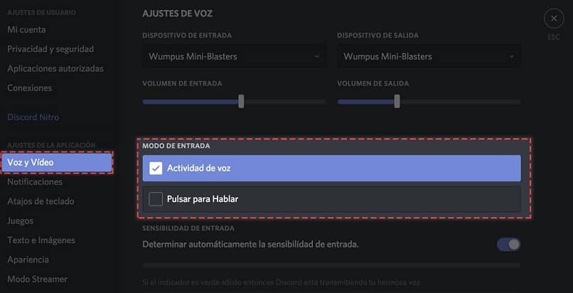 Pour résoudre le problème du moment où je n’écoute pas Discord ou ne m’entends pas, sachez que Discord a une fonction de sensibilité dans l’entrée automatique. Cette option vous donne la possibilité que l’application Discord puisse capturer les sons présents dans l’environnement.