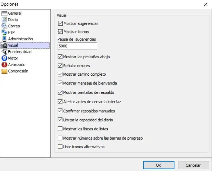 Dans le même temps, il est également important que nous puissions configurer l’interface utilisateur de l’application en fonction de nos besoins personnels. Par conséquent, à partir de la section appelée Visual, nous pouvons le faire. Ici, nous n’avons qu’à marquer les éléments que nous voulons être visibles pour le plus grand nombre que la liste montrée ici montre.