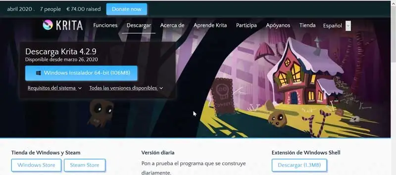 Krita est une application entièrement gratuite que nous pouvons télécharger directement depuis son site Web . C’est un programme multi-système, donc il est compatible avec les systèmes d’exploitation Windows, Mac OS et Linux. Dans le cas de Windows, il dispose également d’une version Portable afin que nous puissions l’utiliser sur différents appareils.