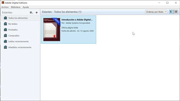 La firme populaire Adobe a également son lecteur EPUB et PDF pour Windows avec lequel lire nos livres préférés. Ses fonctionnalités incluent la possibilité de louer ou d’emprunter la version EPUB de livres dans les bibliothèques publiques , ainsi que d’utiliser des signets. Nous pouvons également organiser les livres par dossiers, mettre en signet nos pages préférées, ajouter des notes ou rechercher des fragments de texte. Son utilisation pour la lecture est très simple d’utilisation, permettant à notre lecture d’être confortable. Pour cela, nous pouvons augmenter ou réduire la taille du texte que nous lisons ou accéder à une page spécifique. Peut-être, son principal inconvénient est qu’il n’a pas beaucoup plus de compatibilité avec d’autres types de fichiers de lecture etil ne permet pas non plus la visualisation en plein écran .