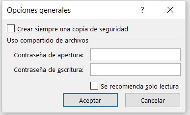 Ensuite, une série d’options apparaîtra, donc dans ce cas nous avons opté pour les options générales. Sur l’ écran, nous verrons alors une nouvelle fenêtre où nous avons la possibilité de définir les mots de passe auxquels nous nous référons. Par conséquent, comme nous le voyons, nous n’aurons ici qu’à définir à la fois un mot de passe d’ouverture et un autre pour écrire indépendamment.