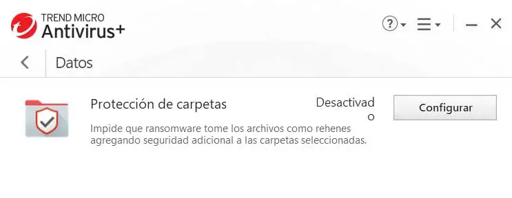 En ce qui concerne la section Data que nous trouvons dans la même interface principale, disons que c’est la même configuration contre les ransomwares que nous avons vue auparavant. Cela nous permettra de re-personnaliser les dossiers personnels inclus au début, ou d’en ajouter de nouveaux pour nous protéger contre les «enlèvements».