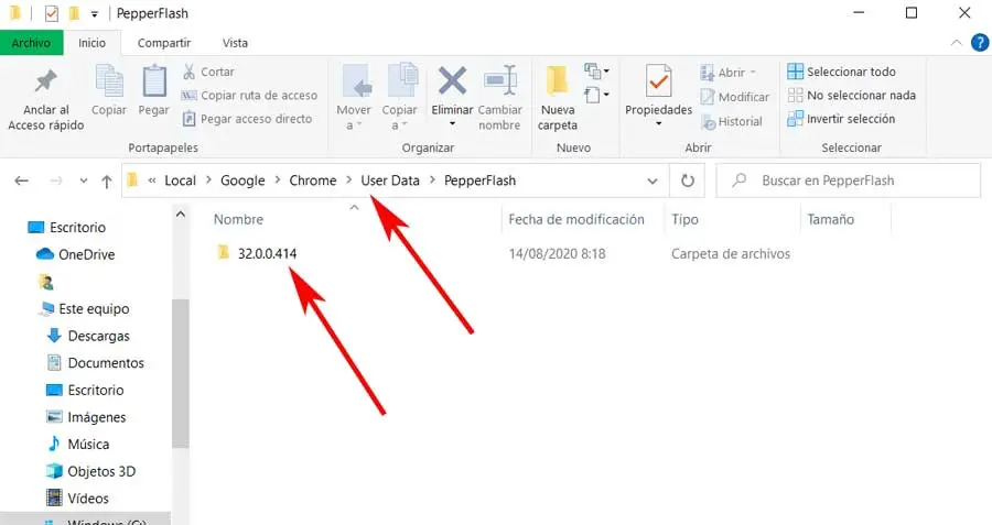 Egalement liée au thème Adobe Flash, une autre solution possible en ce sens que nous pouvons utiliser est de renommer sa bibliothèque . Son nom est pepflashplayer.dll. Par conséquent, à ce stade, nous devons ouvrir une fenêtre Explorateur de fichiers et accéder au chemin C: UsersUSUARIOAppDataLocalGoogleChromeUser DataPepperFlash.