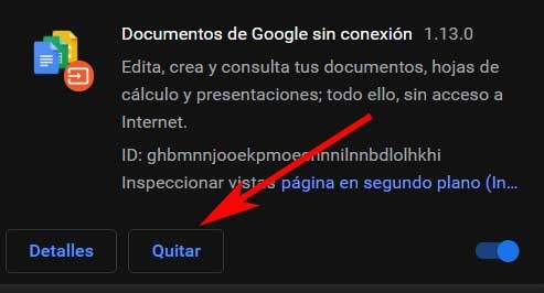 Ensuite, les éléments de ce type que nous avons ajoutés au fil du temps apparaîtront à l’écran. À côté de chacun d’eux, nous voyons un bouton appelé Supprimer, sur lequel nous cliquons une fois que le module complémentaire qui ne se charge pas se trouve.
