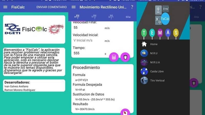 En plus de cela, l’ application Fisicalc vous propose de nombreux exercices pour que vous puissiez vous entraîner, afin de vous préparer au mieux aux évaluations. De la même manière, il vous montre chacune des étapes à suivre pour pouvoir résoudre l’exercice, afin que vous sachiez où vous avez commis l’erreur, en cas d’erreur.
