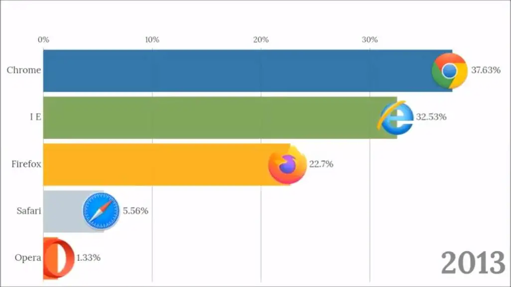 Les années suivantes ont été des années de peuplement. Internet Explorer reste le navigateur le plus utilisé, suivi de Firefox, qui a augmenté de façon imparable en volant des parts de marché à IE, Safari comme troisième navigateur le plus utilisé et Opera comme alternative pour les non-conformistes.