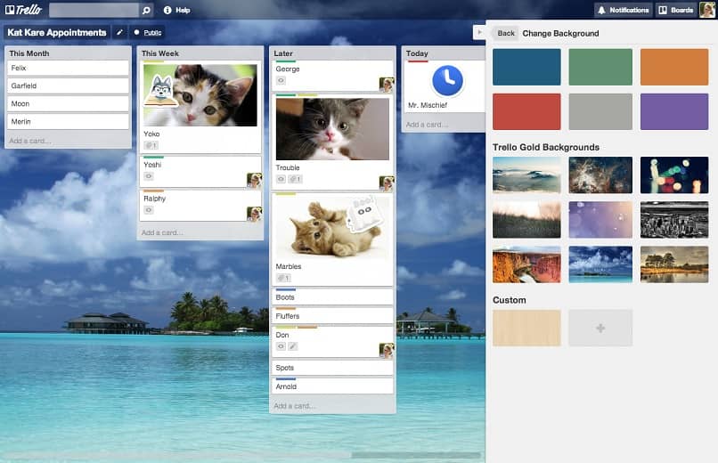 C’est une autre fonctionnalité sur laquelle vous pouvez compter lorsque vous payez pour le forfait Trello Premium . Avec cela, vous pouvez personnaliser chacun des tableaux de manière très créative, en plaçant des autocollants, des emojis ou des images d’arrière-plan en dehors de la plate-forme.