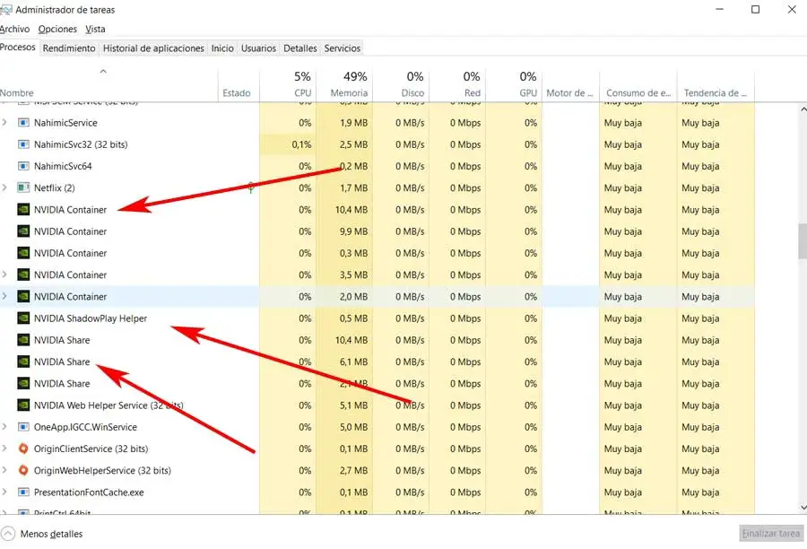 Ceux-ci ne fonctionnent pas au gré du fabricant, car bien qu’ils ne soient pas nécessaires à l’époque, ils sont en arrière-plan pour une raison. Il est vrai que la plupart de ces processus créés par les pilotes NVIDIA , nous pourrions les fermer afin de les empêcher de fonctionner. Cependant, cette étape n’est pas la plus recommandée, tôt ou tard, ils redémarreront d’eux-mêmes. De plus, sa fermeture peut affecter le fonctionnement du reste de l’équipement.