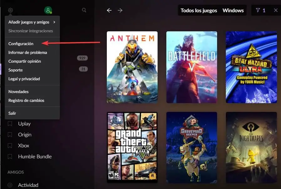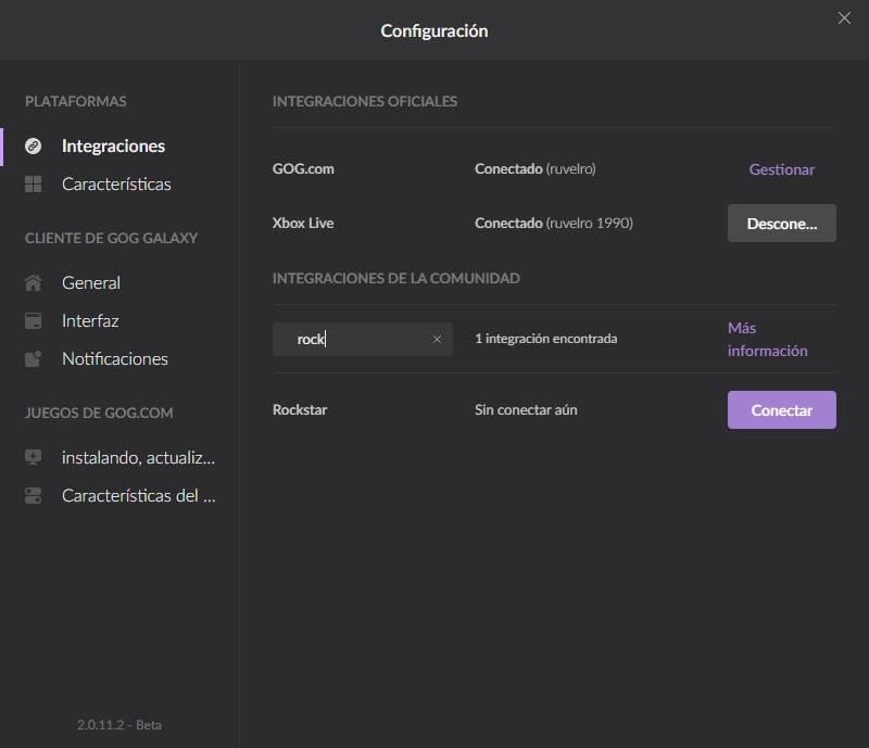 GOG a rendu l’intégration de n’importe quel magasin au sein de cette plate-forme très facile. Pour ce faire, tout ce que nous avons à faire une fois le nouveau GOG Galaxy 2.0 installé est d’ouvrir le menu des paramètres.