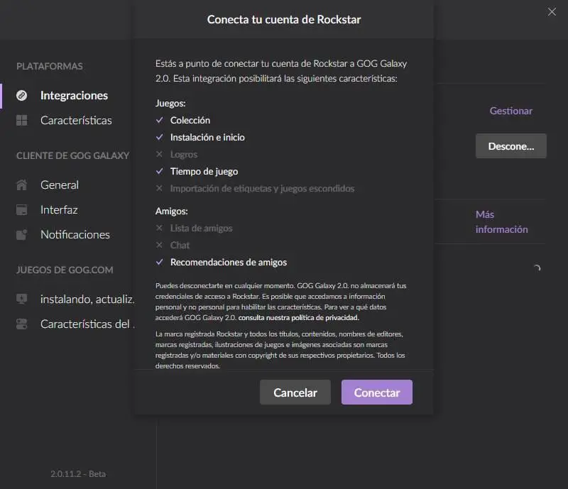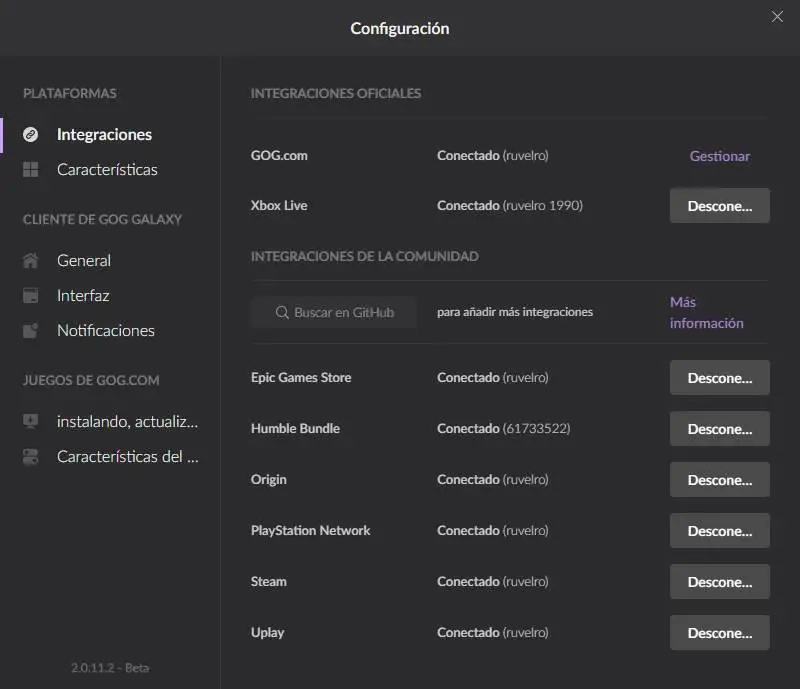 GOG Galaxy 2.0 est la nouvelle version du client officiel GOG (actuellement en version bêta publique, accessible à tous) qui nous permet de synchroniser tous les comptes des autres boutiques en ligne en un seul endroit. De cette façon, à partir de la même application, nous pourrons accéder à tous les jeux que nous avons achetés. Et pas seulement cela, mais nous pourrons également télécharger les jeux, les installer et même les exécuter. Bien que, oui, nous devrons passer par son client officiel correspondant (bien que GOG Galaxy soit responsable de son exécution et même de sa fermeture lorsque nous quittons le jeu).