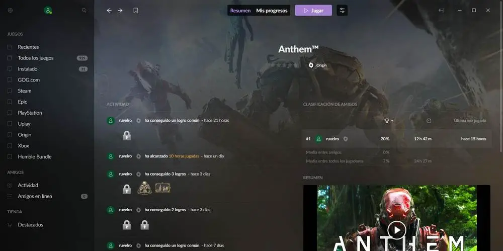 Le nouveau GOG Galaxy 2.0 nous permet d’accéder aux jeux que nous avons achetés dans son propre magasin. Et aussi, cela nous permet d’ajouter tous les jeux d’autres plates-formes, telles que Steam, uPlay, Origin, Epic Store, Humble Bundle, Rockstar et d’autres magasins numériques. La seule plateforme que nous avons manquée a été Battle.net, et c’est qu’il n’y a pas de plugin qui nous permet d’accéder aux jeux Blizzard (du moins pour le moment).