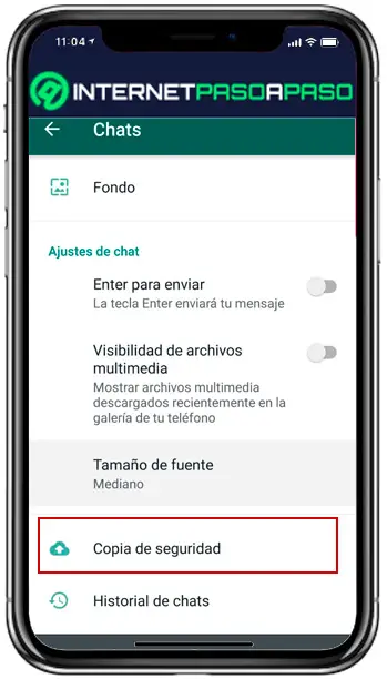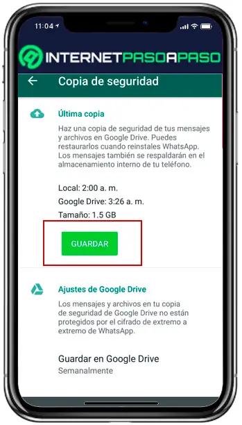 Nous vous recommandons également de saisir à nouveau les options de chat (avec votre nouveau mobile) et d’ activer l’option qui permet la copie automatique dans votre Drive . Dans le cas où vous ne pourriez pas récupérer votre mobile (casse ou vol), ne perdez pas les informations de l’application.