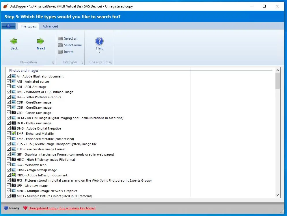 Nous recommandons une application 100% gratuite appelée Recuva au lieu de DiskDigger si nous allons avoir besoin de récupérer beaucoup de fichiers pour éviter le message ennuyeux lors de la récupération de fichiers que nous achetons le logiciel et devons attendre pour continuer.