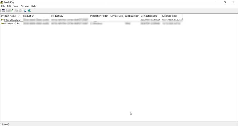 La fenêtre principale est chargée d’ héberger tous les détails nécessaires pour chaque application. Il comprend le nom du produit, l’identification, la clé, le dossier d’installation, le dossier d’installation, le Service Pack, le nom de l’ordinateur et la date de modification.