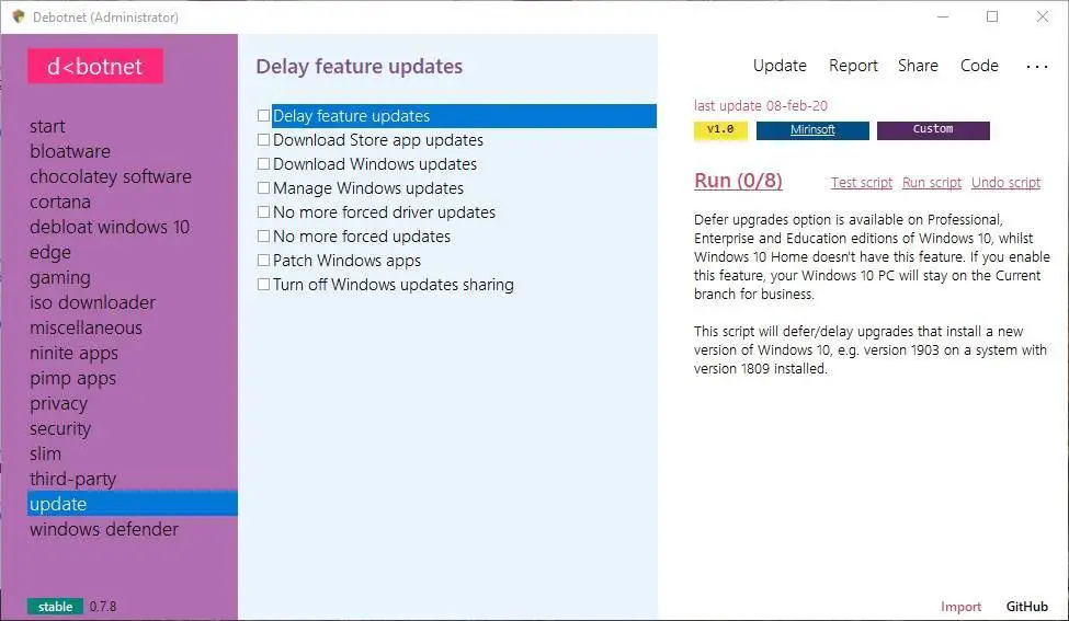 Comme nous l’avons dit, Debotnet est totalement gratuit et également open source. Cela nous permet d’être sûr qu’il ne cache rien d’étrange qui pourrait nuire à Windows. Et sachez aussi avec certitude ce qu’il fait et ce qu’il ne fait pas dans le système.