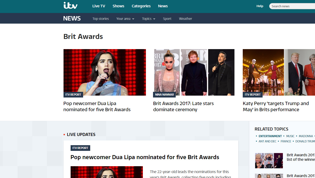 Cette année, les Brit Awards seront diffusés à la télévision sur la chaîne de télévision britannique ITV, et si vous êtes basé au Royaume-Uni, vous pouvez facilement diffuser les récompenses via le site Web d’ITV. Il vous suffit d’aller sur le site Web à l’ adresse https://www.itv.com/news/topic/brit-awards/ et lors de la soirée de remise des prix, vous pouvez diffuser une vidéo de l’événement.