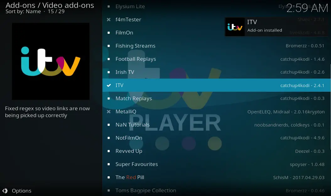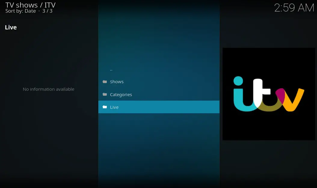 Il existe un addon dédié pour Kodi que vous pouvez utiliser pour diffuser ITV, appelé ITV Live . Si vous souhaitez simplement vous connecter aux Brit Awards et que vous n’êtes pas intéressé à regarder d’autres chaînes de télévision britanniques, c’est un moyen rapide et facile de diffuser la chaîne. Cette méthode nécessite que vous ayez une adresse IP britannique , donc si vous essayez de regarder depuis l’extérieur du Royaume-Uni, consultez la section ci-dessus sur l’utilisation d’un VPN pour afficher du contenu de n’importe où.