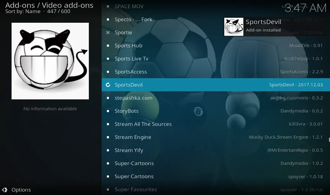 SportsDevil est un add-on sportif préféré parmi les utilisateurs de Kodi, grâce à sa grande variété de sports et de nombreux liens vers des flux. De nombreux liens signifient une meilleure chance pour les utilisateurs de trouver un flux rapide et fiable, et il est utile d’avoir un plugin que vous pouvez utiliser pour regarder le football, le basket-ball, le football, la lutte, la boxe, etc., en plus de l’UFC. . . Le plugin SportsDevil était auparavant hébergé dans le référentiel Maverick, qui a malheureusement été supprimé l’année dernière, mais nous avons trouvé un moyen de toujours installer ce super plugin qui fonctionne toujours bien.