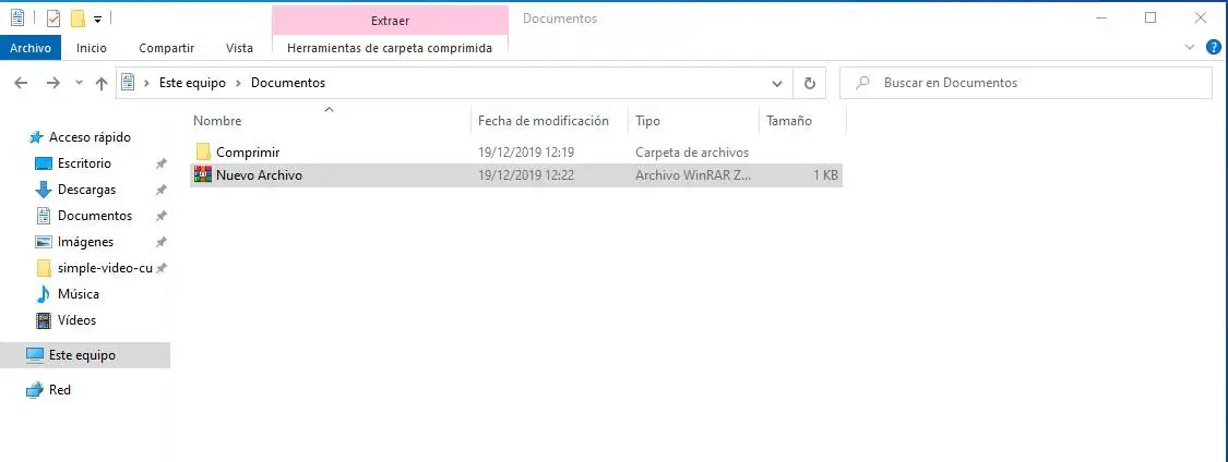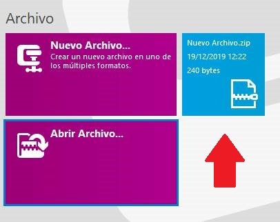 Une fois que nous avons ajouté tous les fichiers que nous voulons à l’intérieur, avec la nouvelle fenêtre qui nous lance, cela nous permet d’ extraire ce fichier , d’en créer un nouveau ou d’en ajouter d’autres. En général, c’est une fenêtre de gestion des fichiers que nous avons ajoutés.