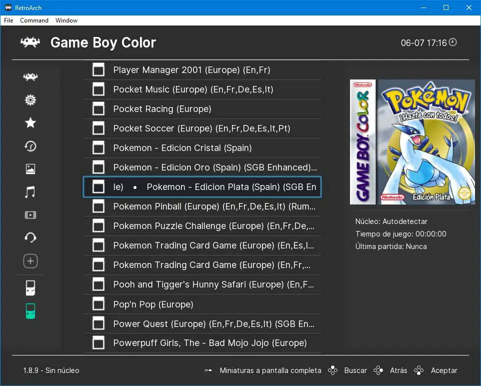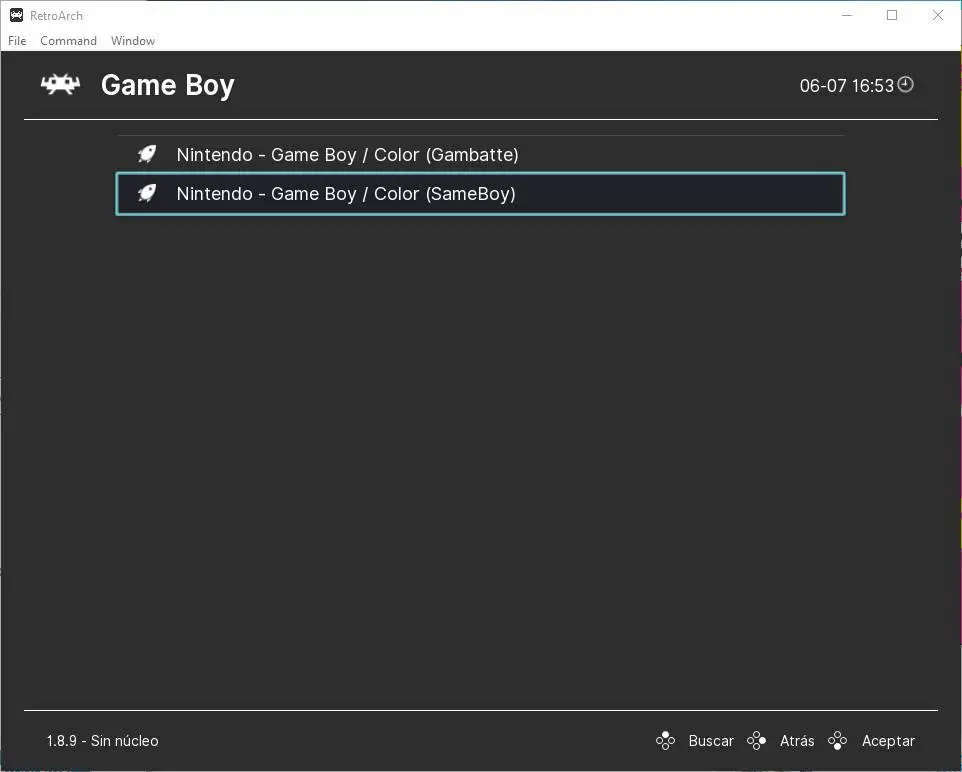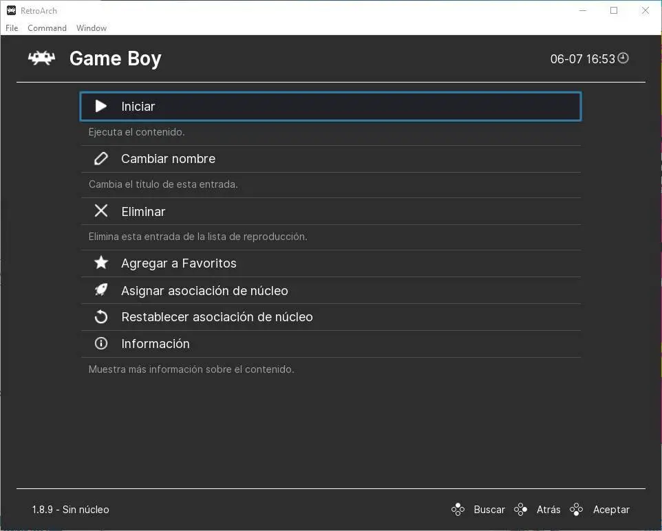 Une fois le jeu sélectionné, tout ce que nous avons à faire est d’appuyer sur «Entrée» pour ouvrir la rom. Ici, nous pourrons voir le menu d’options spécifiques pour chaque émulateur. Même lors de son lancement, nous pourrons choisir avec quel noyau nous allons l’exécuter.