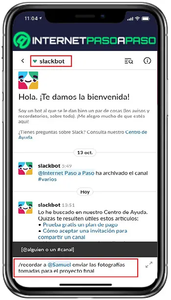 Depuis l’application mobile Slack, il est beaucoup plus utile d’utiliser le Slackbot pour ajouter des rappels . Ainsi, ledit bot est capable de les montrer sous la forme d’une notification avec le texte que vous demandez et au moment où vous le demandez. Grâce à cela, vous ne manquerez rien d’important et vous n’aurez pas à utiliser d’autres solutions tierces pour recevoir des rappels .